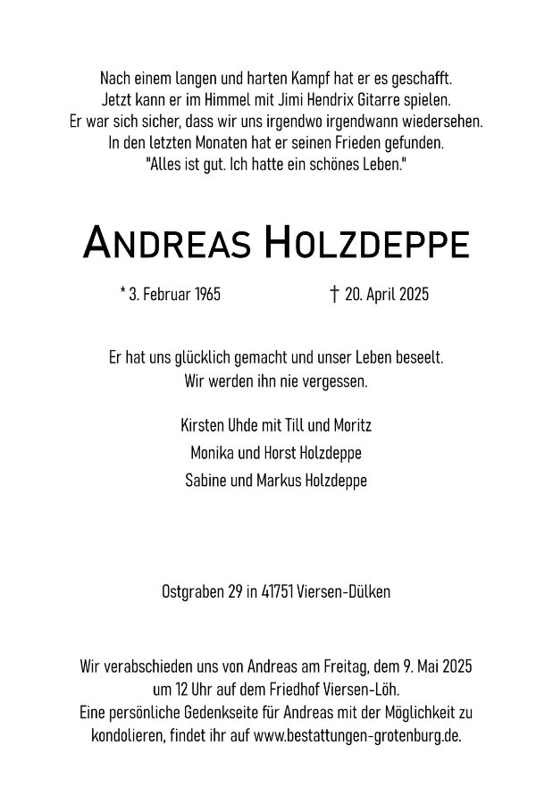 Fassungslos habe ich von Andreas seinem viel zu frühen Tod erfahren. Er hat bis zum Schluss gekämpft aber leider nicht gewonnen.